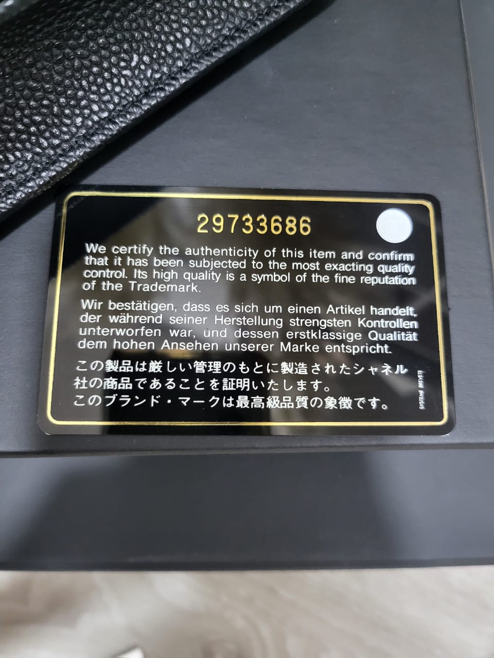 Includes: Original receipt, Box, Dustbag, Authentic Card with hologram intact